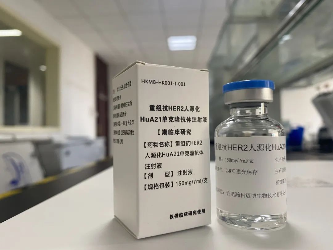HuA21 注射液(全稱:重組抗 HER2 人源化 HuA21 單克隆抗體注射液)是瀚科邁博第一款進入臨床試驗階段的 I 類創新藥。HuA21 為針對 HER2 的人源化單克隆抗體類腫瘤靶向藥物,含有與赫賽汀和帕妥珠單抗完全不同的氨基酸序列,具有完全自主知識產權。HuA21 通過誘導 HER2 受體的內吞和下調,打斷癌細胞信號通路,從而抑制癌細胞生長和增殖,產生促進癌細胞凋亡、抗腫瘤血管生成等效果,最終達到抑制腫瘤的作用。