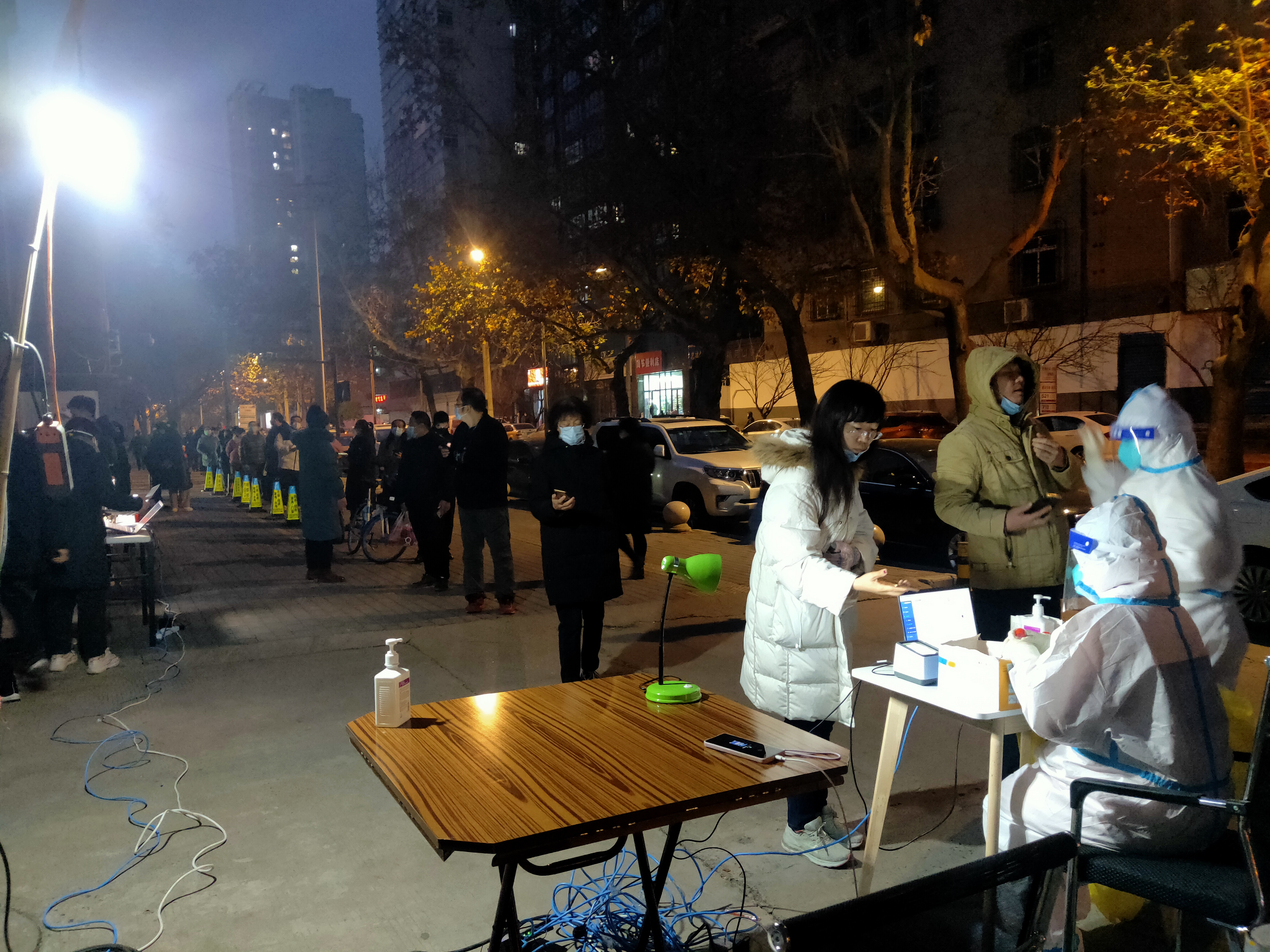 雖有疫情影響,但這座城市并沒(méi)有失去溫暖與溫度?,F(xiàn)場(chǎng)的核酸采集點(diǎn)都安排在室外,天寒地凍,每一次采集結(jié)束后都要消毒,冷風(fēng)吹來(lái)瞬間感覺(jué)手部涼透。而熱心市民為她們送來(lái)的熱飲,卻讓黃俊芳和在場(chǎng)的工作人員倍感溫暖。