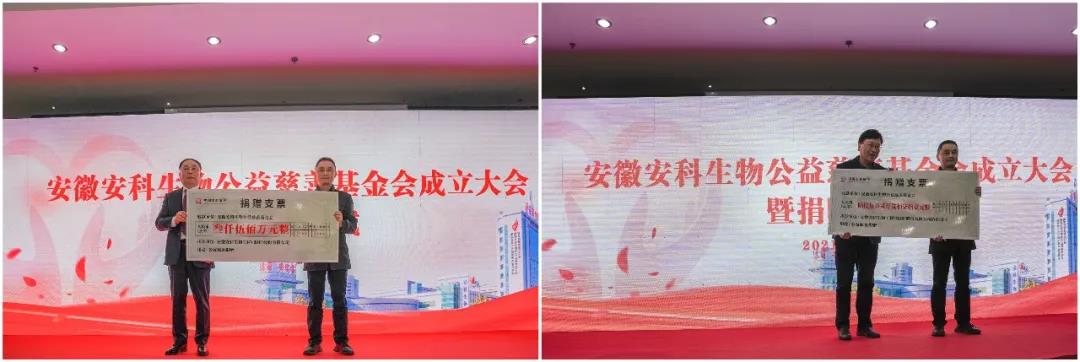 活動(dòng)當(dāng)天,安徽安科生物公益慈善基金會(huì)向安徽大學(xué)、安徽農(nóng)業(yè)大學(xué)、安徽醫(yī)科大學(xué)、安徽中醫(yī)藥大學(xué)、安徽師范大學(xué)、溫州醫(yī)科大學(xué) 6 所高校分別捐贈(zèng)獎(jiǎng)助學(xué)金 100 萬(wàn)元,助力困難學(xué)生更好完成學(xué)業(yè),總額達(dá) 600 萬(wàn);向中華少年兒童慈善救助基金會(huì)“中國(guó)流動(dòng)留守兒童體格發(fā)育研究和能力建設(shè)項(xiàng)目暨‘天使童行’公益項(xiàng)目捐贈(zèng) 100 萬(wàn)元,用于幫助更多生長(zhǎng)發(fā)育關(guān)鍵時(shí)期的孩子們健康成長(zhǎng);向安徽省馬鞍山市當(dāng)涂縣焦家社區(qū)老年人日間照料中心捐贈(zèng) 100 萬(wàn)元,用于關(guān)愛孤寡老人們的生活質(zhì)量和身體健康。