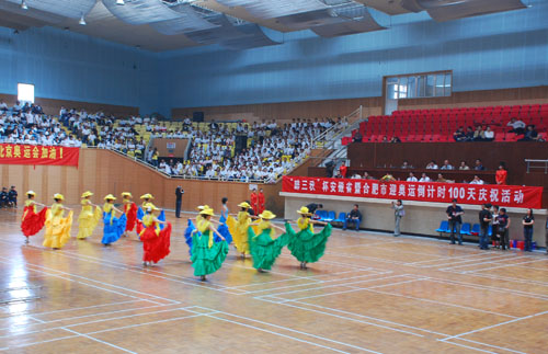 430日,安徽省及合肥市迎奧運倒計時100天慶祝活動在合肥市體育館隆重舉行,我公司組織了100余人的強大陣營參加了當天的慶祝活動。