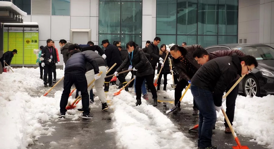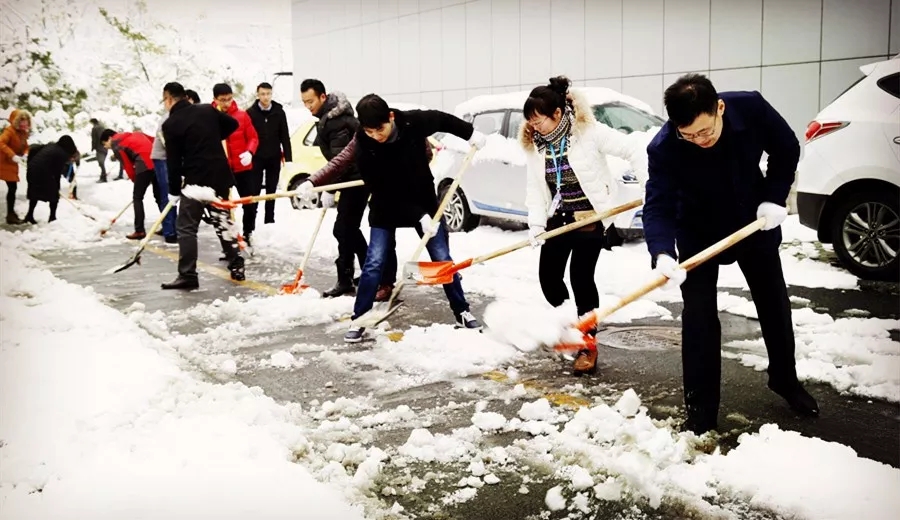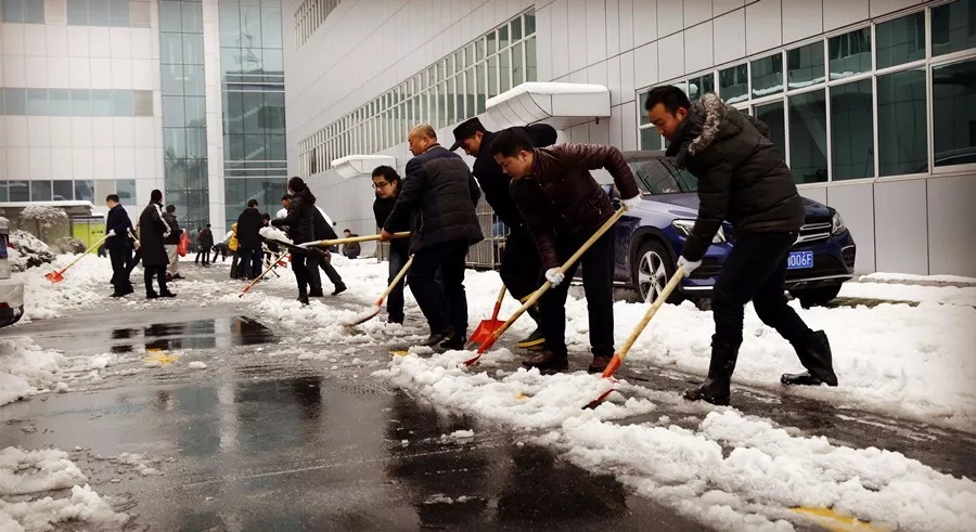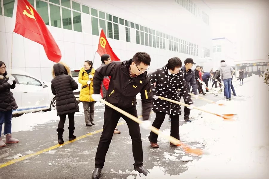 為了讓公司的各個路口恢復通行能力,讓員工有路可走,公司黨總支急員工所急,想員工所想,充分發動黨員、積極分子和共青團員們清理公司主干道上的積雪。一經提議,50 多名黨員的積極響應。大家于中午 12:30 分準時投入到鏟冰除雪的“戰斗”中來。公司許多高管積極支持,身體力行,以身作則,給廣大黨團員們起到模范帶頭作用。他們不畏嚴寒,不怕濕滑,通過近一個小時的連續作戰,400 米長的主干道上的積雪被清理的十分干凈。筆直的瀝青路面在白雪的映襯下顯得更加顯目,公司的道路又恢復了往日的繁忙。