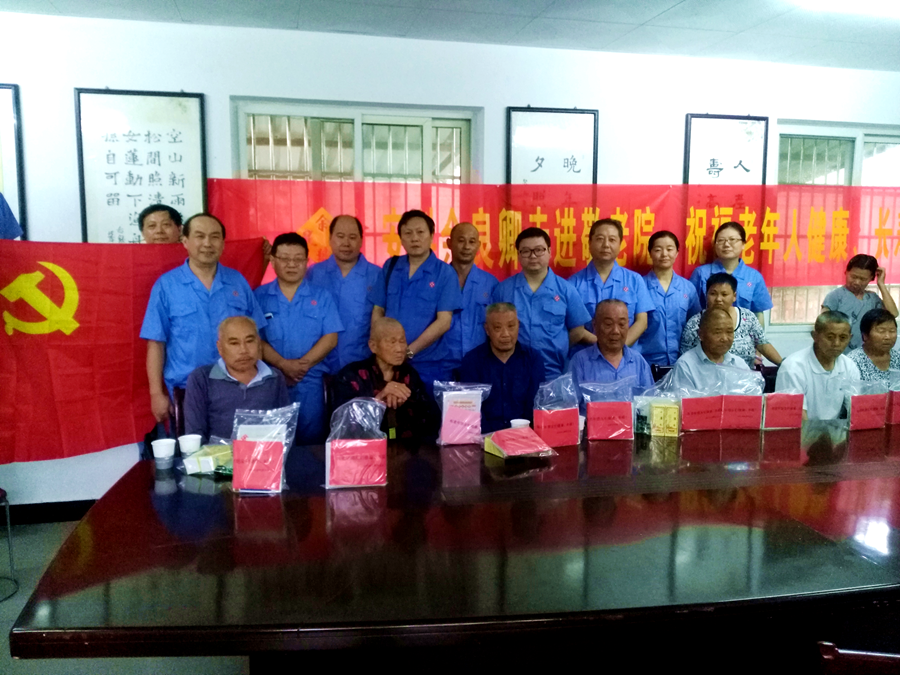 宜秀區大楓敬老院是第一支部的目的地。16 名一支部黨員剛剛到達,就受到了區民政局、鄉分管領導的熱情迎接。座談會上,領導們對余良卿“精工良藥·福澤百姓”的企業信條和社會責任感贊嘆不已。院長代表所有老人感謝慰問組夏日里送來清涼。當黨員們將防暑慰問品遞到老人們的手中時,每個人的臉上都泛起真摯的笑容,暖暖的情意頓時籠罩在每個人的心頭。