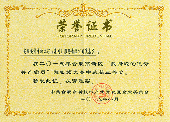 日前,由安科生物黨總支選送,公司企劃部策劃、拍攝并制作的專題片“與科技同行,與安科共進(jìn)”在合肥高新區(qū)舉辦的“我身邊的優(yōu)秀共產(chǎn)黨員”微視頻作品大賽中脫穎而出,一舉奪得大賽三等獎。