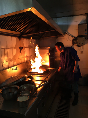 看著老張的鍋鏟熟練地上下翻飛,我們的崇敬之情也油然而起……