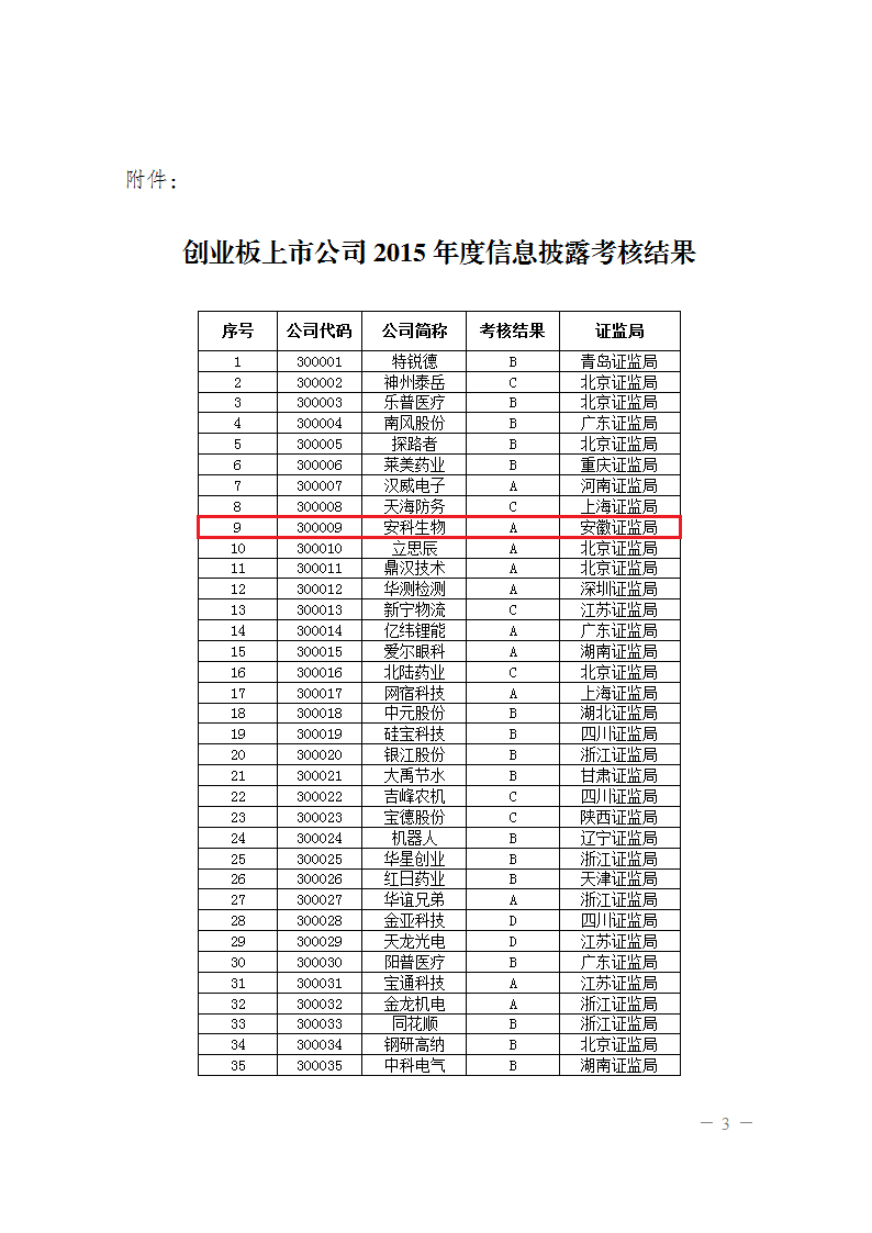 這是公司連續第三年獲得深交所創業板信息披露考核A級結果,今年安科生物還成為了唯一獲得A級結果的安徽創業板公司。
