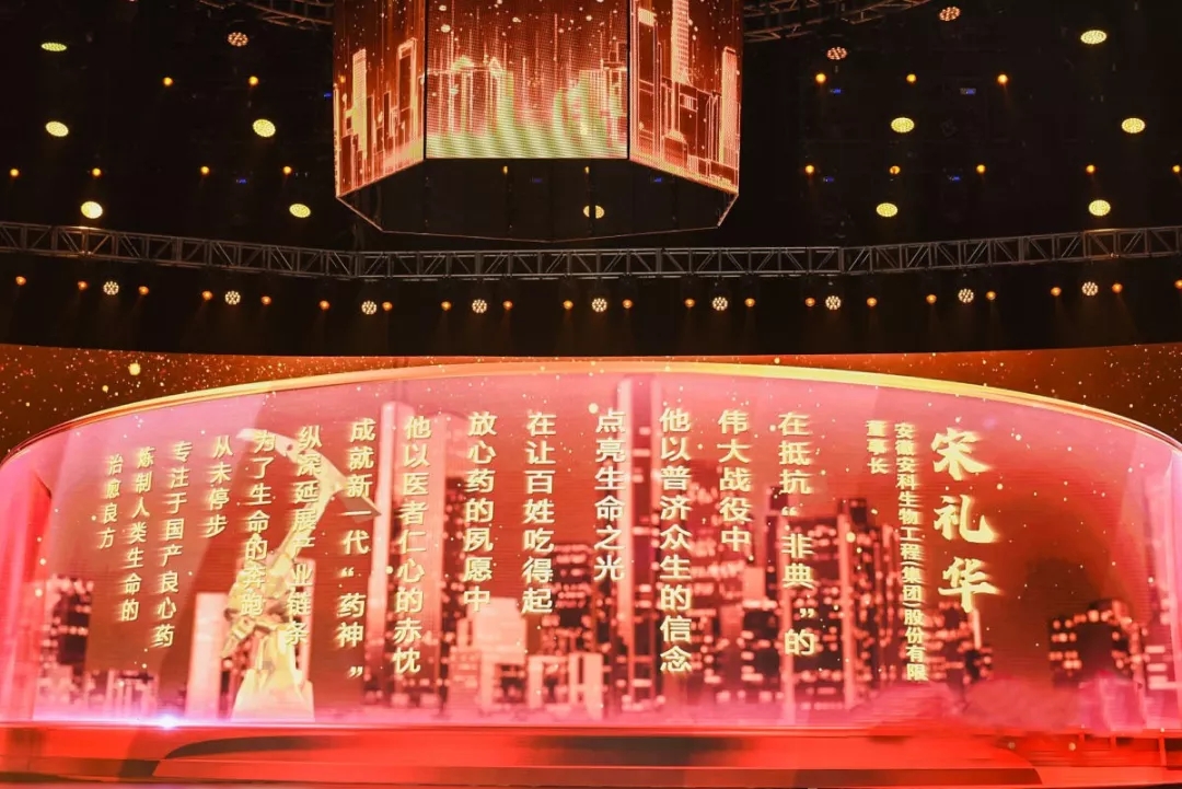 2020 年 1 月 14 日,2019 年第十三屆安徽年度經濟人物頒獎盛典在安徽廣播電視臺亞洲一號演播廳隆重舉行,安徽電視臺經濟生活頻道全程直播。包括安科生物宋禮華董事長在內的 10 位安徽企業家當選“十大經濟人物”,并出席頒獎盛典。