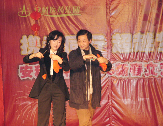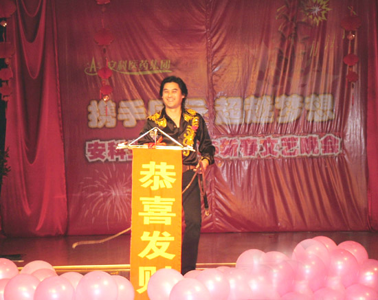 晚會結束語“這世界除了生命永恒、歲月永恒外,還有我們安科人年復一年的執著和追求。讓我們將激情的火焰再度點燃,讓我們將夢想的翅膀又一次放飛。在新的一年,讓我們以自己不盡的智慧和堅實的步伐,讓我們用忠誠的誓言和不變的承諾,開拓進取,拼搏奉獻,一同去創造安科更加美好燦爛的未來。”道出了全體安科員工的共同心聲。