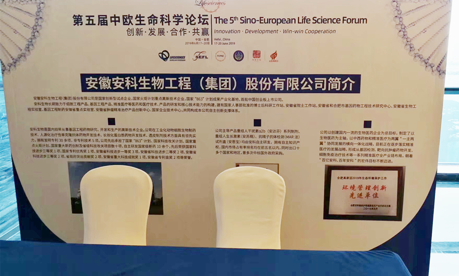 6 月 18 日,由中國科協國際聯絡部、合肥市科協、合肥市高新區管委會等共同主辦的第五屆中歐生命科學論壇在合肥舉行,安科生物作為對接項目單位受邀參會。論壇主要圍繞當前國際國內應用醫藥、醫學、醫療領域的若干科技和產業熱點、重點、難點及發展趨勢等問題展開研討,為生命科學領域開展高層次交流、項目創新合作、產業發展和市場拓展搭建合作交流平臺。