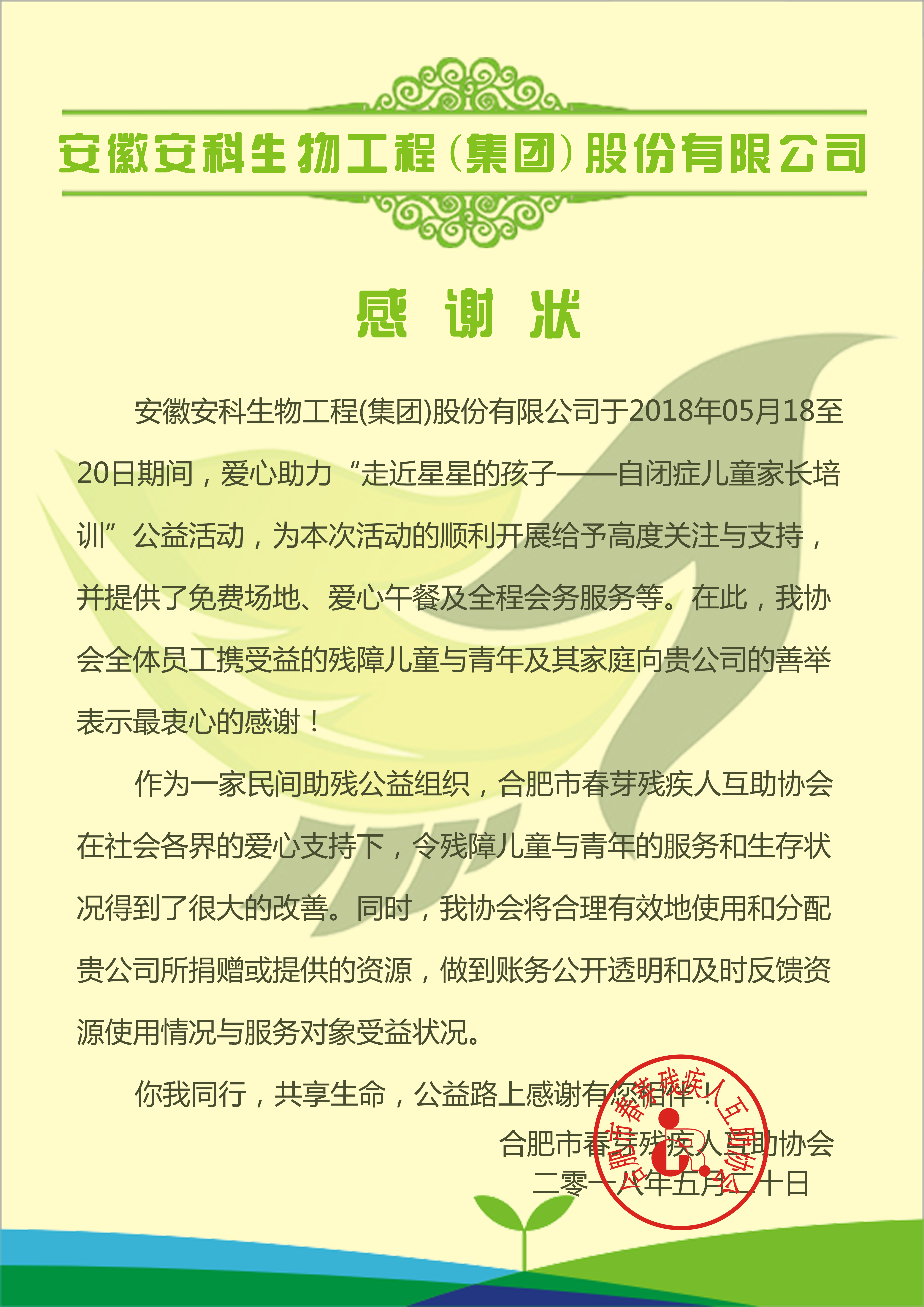 劉媽媽說:通過這幾天觀察,覺得安科生物是個充滿安心的大企業,無論是客服、保潔、保安都很友善、寬容、包容。真的,他們的服務太有愛心了!并在現場與一起參加培訓的媽媽們一起雙手合十,真誠地說:我代表所有參加培訓的家長,向你們的宋禮華董事長表示由衷地感謝!希望以后春芽殘疾人互助協會繼續能與安科生物集團的合作,得到你們的幫助與支持!