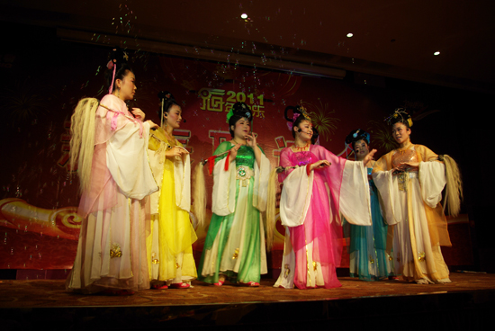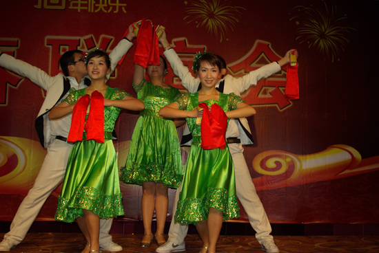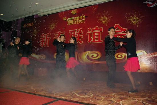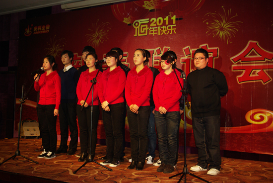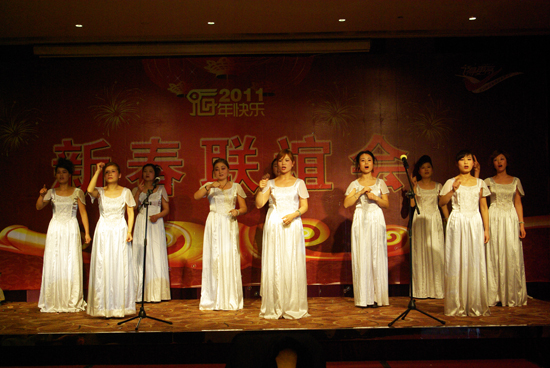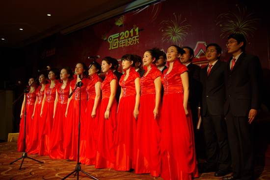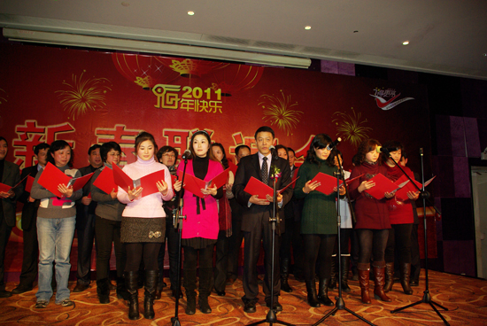 晚宴結束后,集團公司對2010年度的先進集體及優秀個人進行了表彰。在隨后進行的文藝匯演中,所有演員充分展示自己的才藝,文藝節目精彩紛呈。晚會節目類型涵蓋了歌舞、小品、詩朗誦、樂器演奏等多種形式,整臺晚會氣氛熱烈、高潮迭起,掌聲和笑聲拉近了彼此的距離,“飛得更高”凝聚了全體員工的共同心愿。