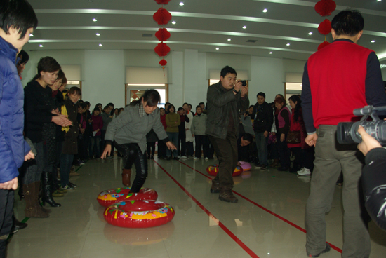 聯誼活動共分為體育比賽、聯歡晚宴、年度優秀表彰和文藝節目匯演等四大版塊。當天下午舉行的體育比賽除了乒乓球、桌球、羽毛球、拔河、跳大繩等競技類項目外,還包括了大腳板、小馬過河、摸石過河、螃蟹背西瓜、自行車慢騎、踢毽子等娛樂性比賽。運動員努力拼搏、觀眾齊聲吶喊,比賽現場匯成了一片歡樂的海洋。
