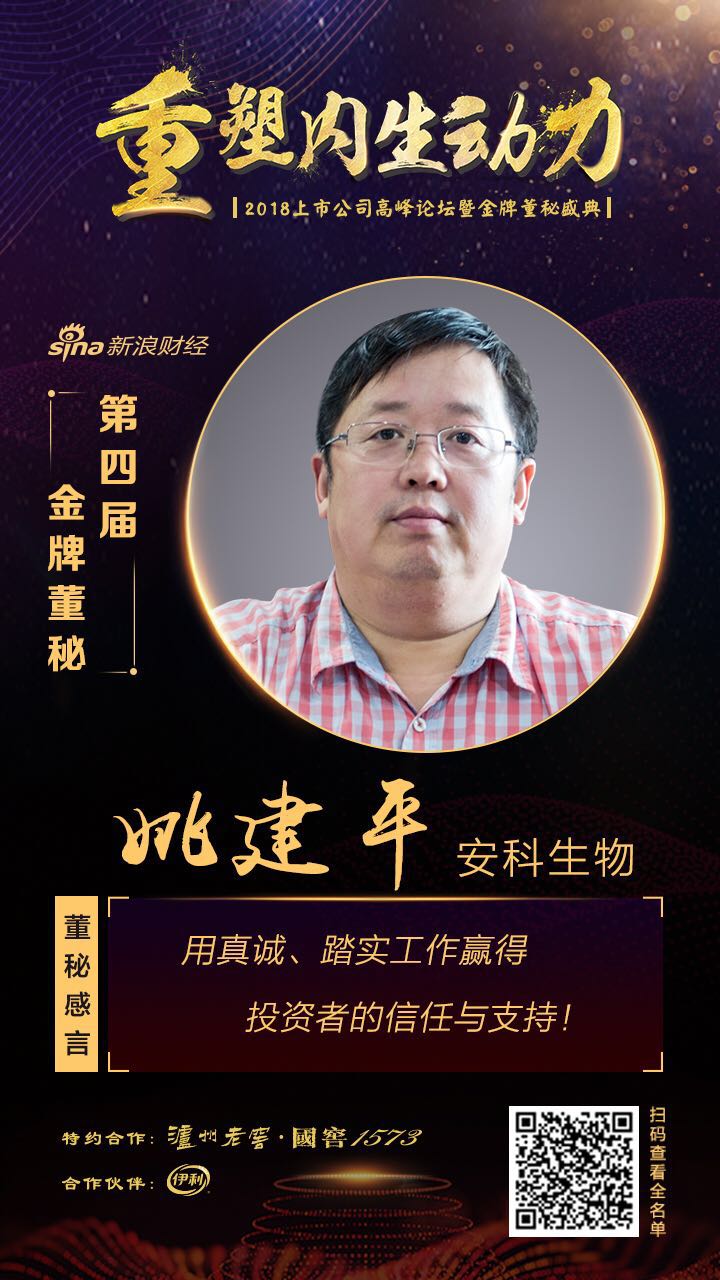 安科生物董秘姚建平榮獲2018年新浪財經金牌董秘
