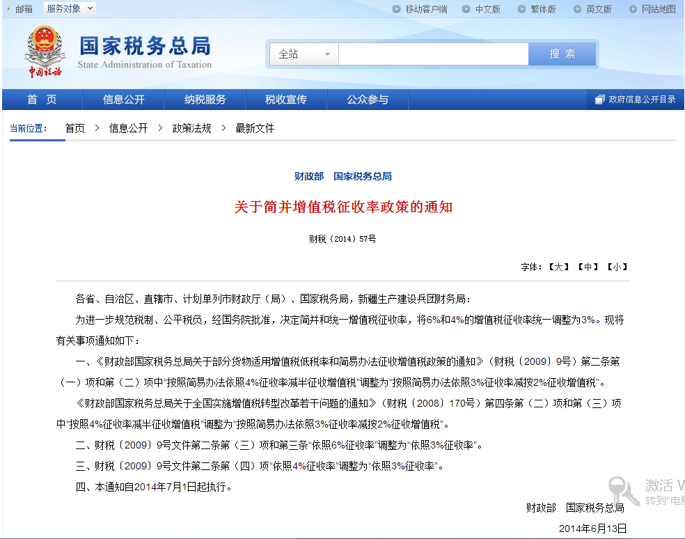 6月18日,財政部和國稅總局發文稱7月1日起簡并調低部分增值稅征收率至3%。調整后生物制品等行業將因征收率下調而減負效果明顯。