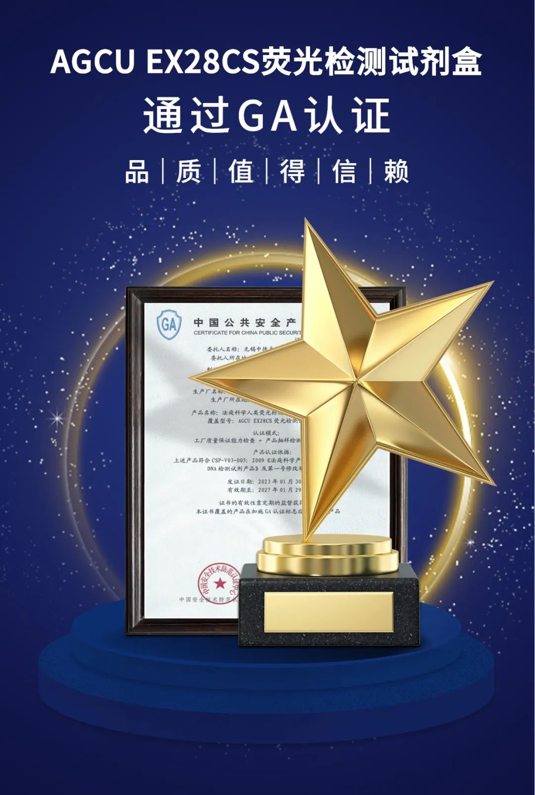 中德美聯AGCU EX28CS熒光檢測試劑盒通過GA認證