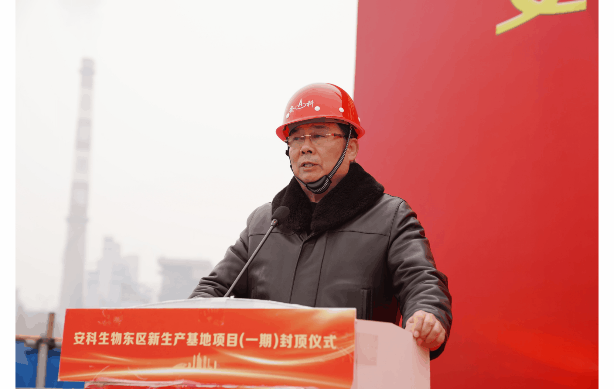 宋禮華董事長在致辭中對施工建設單位、監理單位等項目全體同仁的大力支持和辛勤付出,表示誠摯的感謝。他表示:“安科生物東區新生產基地的首棟3#單體封頂,意味著公司產業化的規模和產業化水平再上新臺階。東區地塊,從2022年9月正式簽署土地出讓合同獲得土地使用權,到獲得分階段施工許可證(土方工程)和2022年12月成功召開東區項目啟動會,再到2023年8月18日獲得建筑施工許可證和首棟單體封頂,歷經了一年多的時間。期間,大家克服了特別是疫情期間的各種矛盾和困難。在中建四局全體領導和工友的努力下,工程進度比較順利。在監理單位和公司項目工程中心的嚴格管理下,工程質量和施工安全也得到了充分的保障。希望建設單位再接再厲把好接下來的質量關安全關,努力加快整體項目進度,早日實現項目全面竣工。安科生物全體同仁也將積極配合,早謀劃早準備,在項目土建攻堅的同時,我們將全力推動高標準產業化生產線的設計和籌備建設等工作,爭取實現項目的高效推進。”