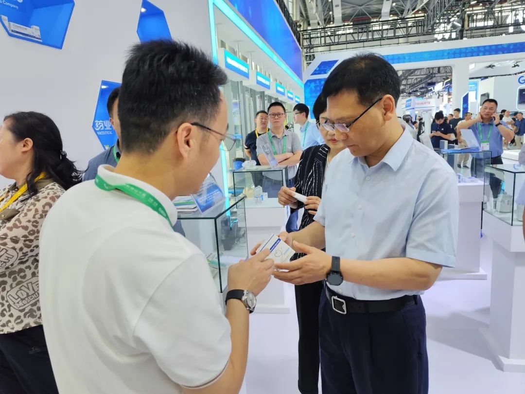 大會期間,安徽省工業(yè)和信息化廳黨組書記、廳長馮克金到精品醫(yī)藥展區(qū)進行巡視,公司兒科事業(yè)部副總經(jīng)理雷明向馮克金廳長詳細介紹了公司自主研發(fā)的注射用曲妥珠單抗“安賽汀”以及公司龍頭產(chǎn)品注射用人生長激素“安蘇萌”等系列產(chǎn)品的基本信息、經(jīng)營概況。隨后,馮廳長對安科生物多年來在醫(yī)藥研發(fā)以及推動安徽生物醫(yī)藥創(chuàng)新、高質(zhì)量發(fā)展所做的努力表示肯定。
