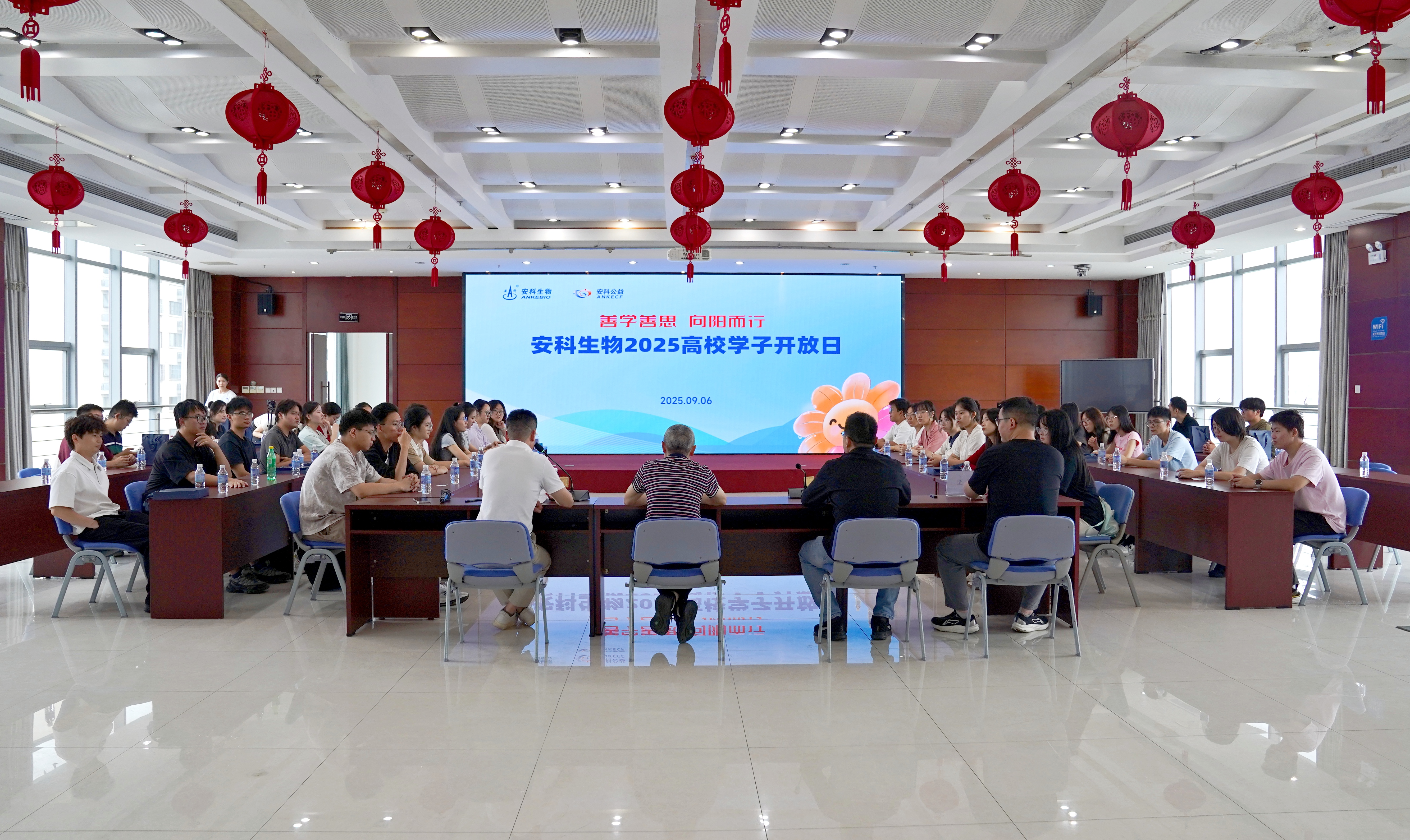 99公益日來(lái)臨之際,安徽安科生物工程(集團(tuán))股份有限公司攜手安徽安科生物公益慈善基金精心籌備舉辦了一場(chǎng)別具意義的高校學(xué)子開(kāi)放日活動(dòng)。特別邀請(qǐng)了來(lái)自安徽大學(xué)、安徽醫(yī)科大學(xué)、安徽農(nóng)業(yè)大學(xué)、安徽中醫(yī)藥大學(xué)四所高校的40余名安科生物獎(jiǎng)學(xué)金、助學(xué)金學(xué)子,走進(jìn)企業(yè),近距離感受生物醫(yī)藥產(chǎn)業(yè)跳動(dòng)的創(chuàng)新脈搏,體悟企業(yè)深厚的的人文關(guān)懷與公益溫度。