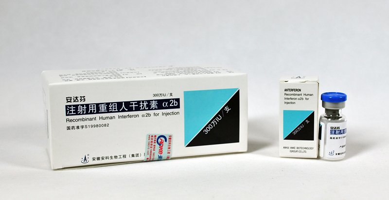 Anterferon is the first Recombinant Human Interferon ɑ2b for injection licensed by CFDA. This product exerts actions of anti-viral, inhibiting proliferation of tumor cell and regulating immunity. The latter includes enhancing the activities of macrophages, T cells and NK cells. Having undergone clinical trials, ANTERFERON has been proven to be with the best quality because of its higher efficiency, lower side-effect and less neutralizing.