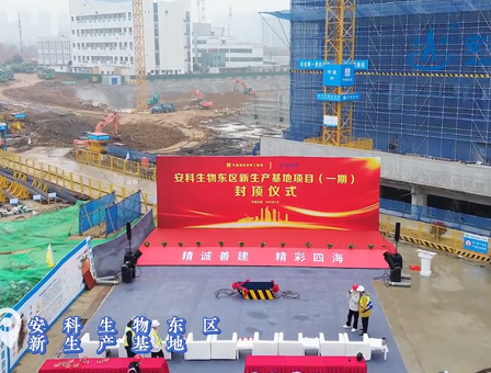 安科生物新產業化基地項目一期順利封頂,從施工許可獲批到部分封頂用時不到150個日歷天!